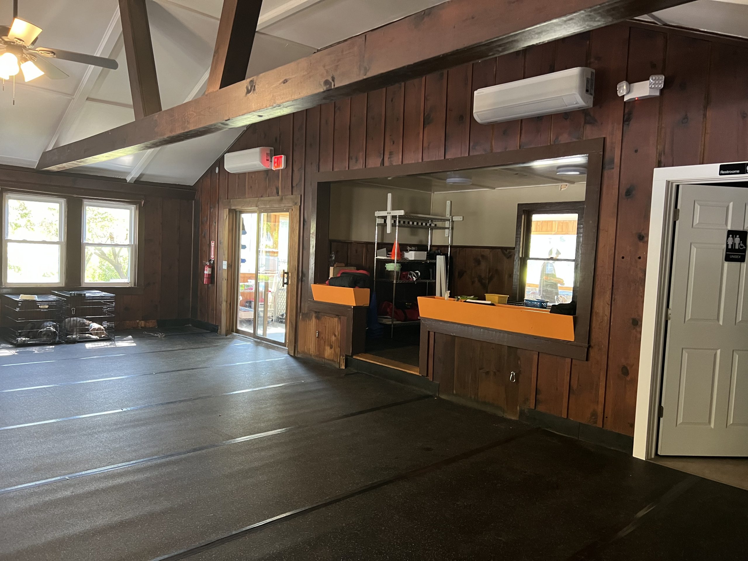 The Greenfield facility features indoor training space, private rooms for crating and training, and a retail shop. A separate building will house the puppy programs, the grooming salon and a business office. Both buildings on the property have been completely renovated. Future plans include fencing and cleaning the large pond and adding a dock for dock diving activities. Trails will also be added to the property.