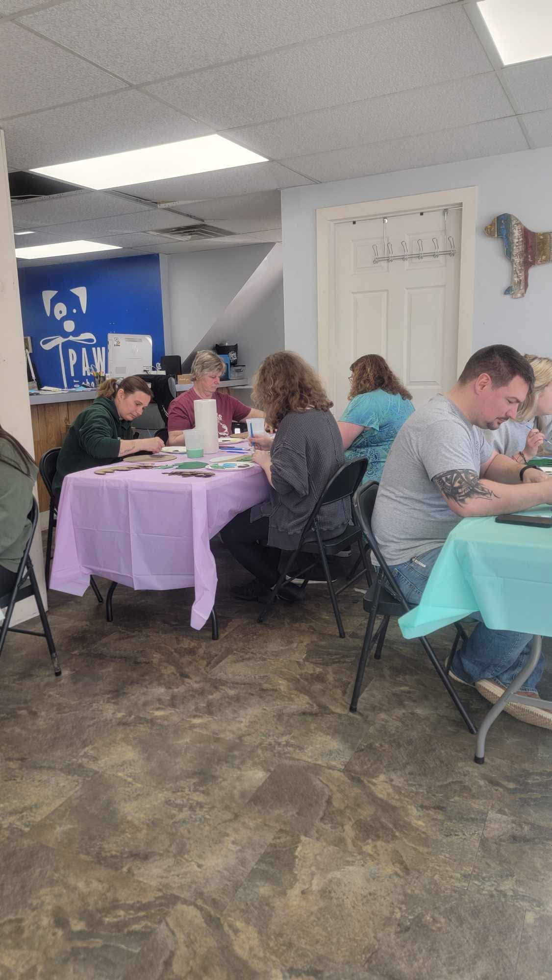 PAWS will offer frequent seminars and workshops for the community such as first aid training, nutrition or therapy dog training. Each PAWS location offers multiple “Bark & Paint” classes each year that feature a painting project to benefit a local charity.