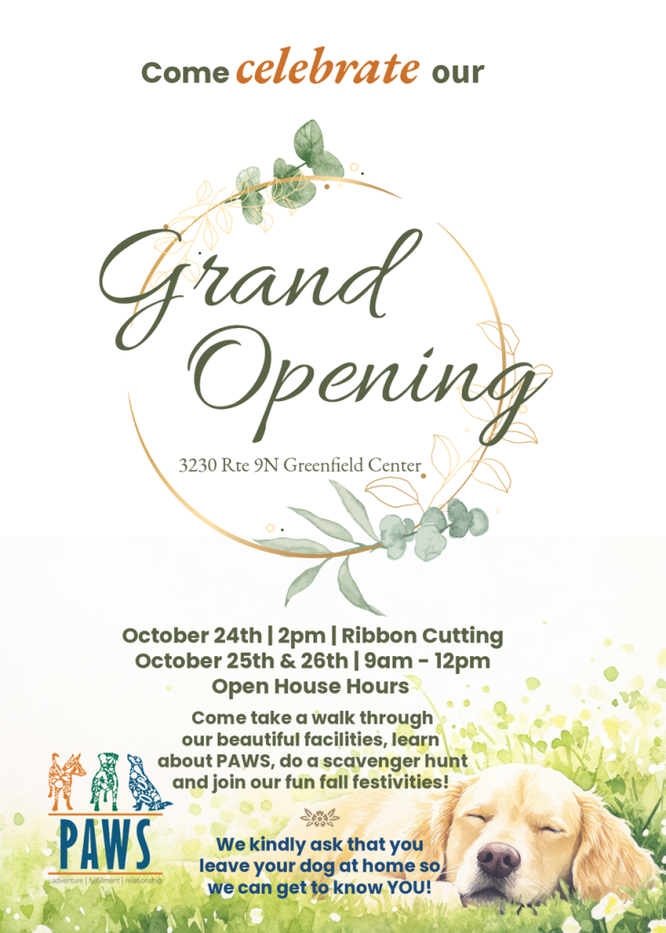 “We are delighted to welcome this successful business to Greenfield,” said Town Supervisor Kevin Veitch. “It seems that the perfect business has found a perfect location. This beautiful and rural property has big history and we’ve all been waiting for the right type of business to come along. I think that PAWS, with its community focus, is going to fit right in.”